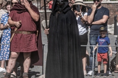 A condurre due ore di spettacolo è il Presidente di Ars Dimicandi, Dario Battaglia, che oltre a coreografare oltre 50 tra gladiatori e rievocatori storici, ha ripercorso con enfasi e puntualità storica quanto accadeva davvero nel Colosseo dei tempi, chi erano i gladiatori e cosa si spettava il Popolo da loro.